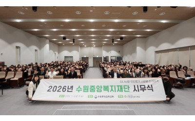 수원중앙복지재단에서는 지난 1월 2일(금) 오전 8시 수원중앙침례교회에서 산하기관 직원 약 200명이 참여한 가운데 ‘2026년 수원중앙복지재단 시무식’을 진행하였다.  …