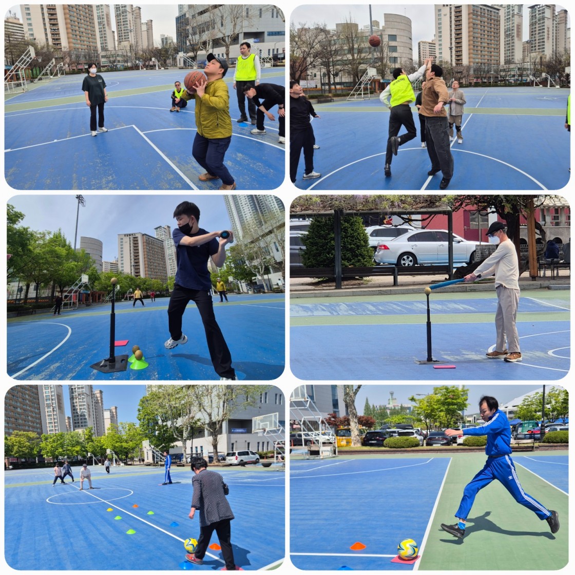 4월 뉴스포츠 활동으로는 야외농구장에서 농구, 티볼, 발야구 활동이 진행되었습니다. 공을 이용한 활동으로 이용인 들의 흥미와 참여도가 높았으며 단체 경기를 통해 규칙을 터득하여 인지력 향상에도 도움이 되었습니다.