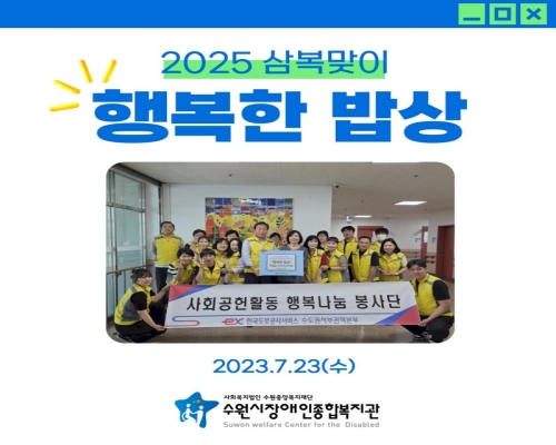 내용 : 한국도로공사서비스 수도권서부권역본부의 후원과 봉사로 장애인 및 지역주민을 위한 삼계탕, 아이스크림 등 무료중식 제공