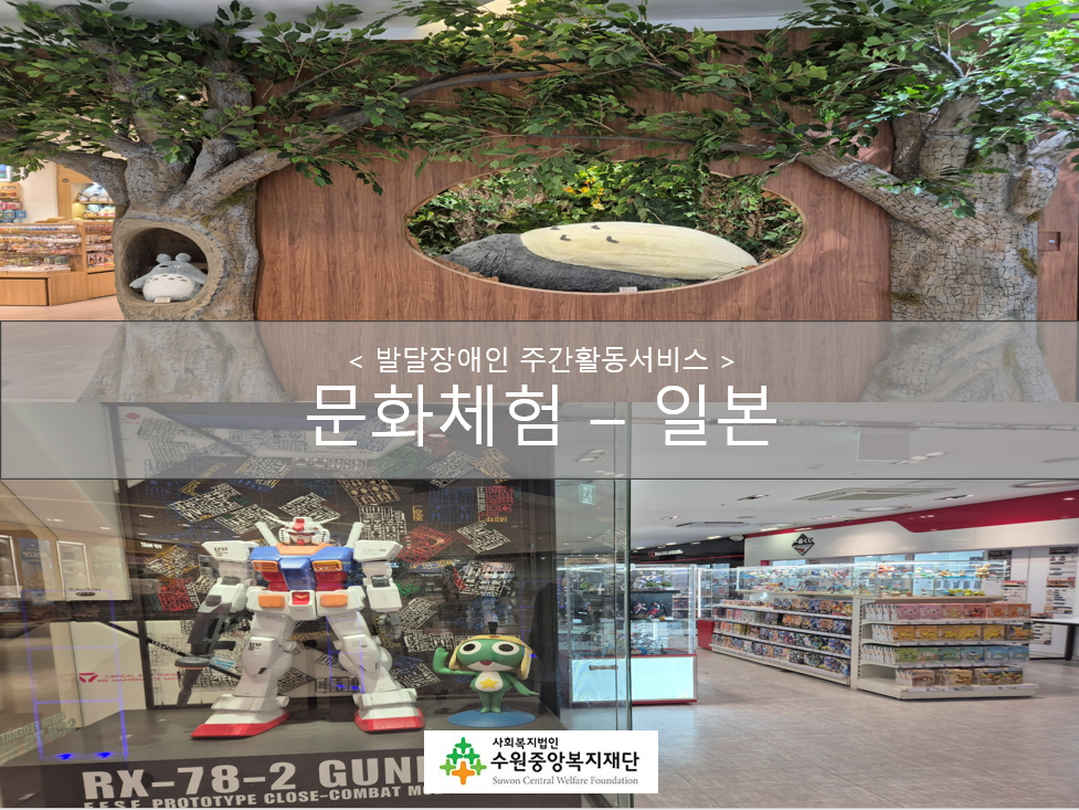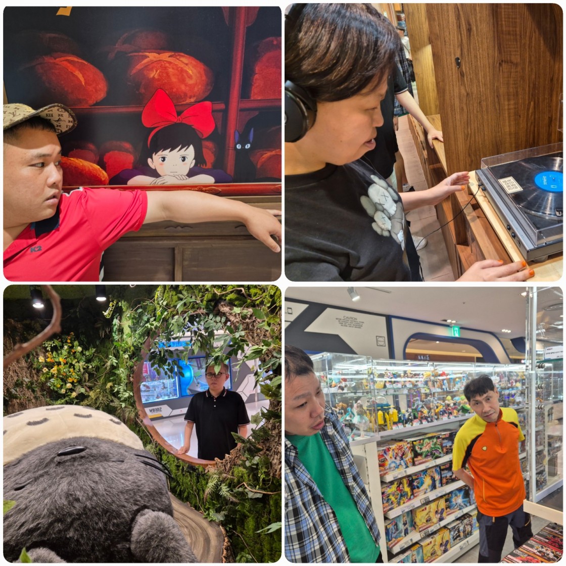 금일 수원AK백화점 내부에 있는 도토리숲(지브리 캐릭터 굿즈샵)과 건담프라모델 굿즈샵을 방문하였습니다. 영화에서 봤던 캐릭터 상품이 진열되어 있는 것을 보고 흥미를 보이며 서로 이야기를 나눴습니다. 과거의 영상 매체에서 봤었던 로봇이나 캐릭터를 보고 반가워하는 이용인도 있었습니다. 서로 대화를 하고 포토존에서 사진도 촬영하며 친밀도를 높일 수 있었습니다.