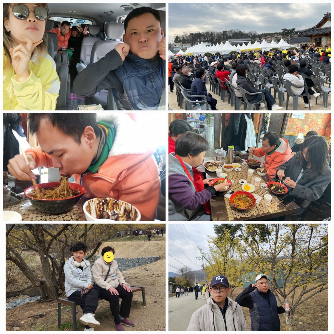 이용인들은 기나긴 겨울 동안 움츠러져 있던 몸과 마음을 노란 산수유를 보며 화사하게 펼 수 있는 기회였습니다. 또한 점심 식사로 중식당에서 먹는 짜장면의 외식에도 큰 즐거움을 느끼며 즐거워했습니다. 축제장에서 만난 연예인과 사진 촬영도 하고, 개막식 관람, 시식 코너 등의 다양한 체험을 하였습니다.