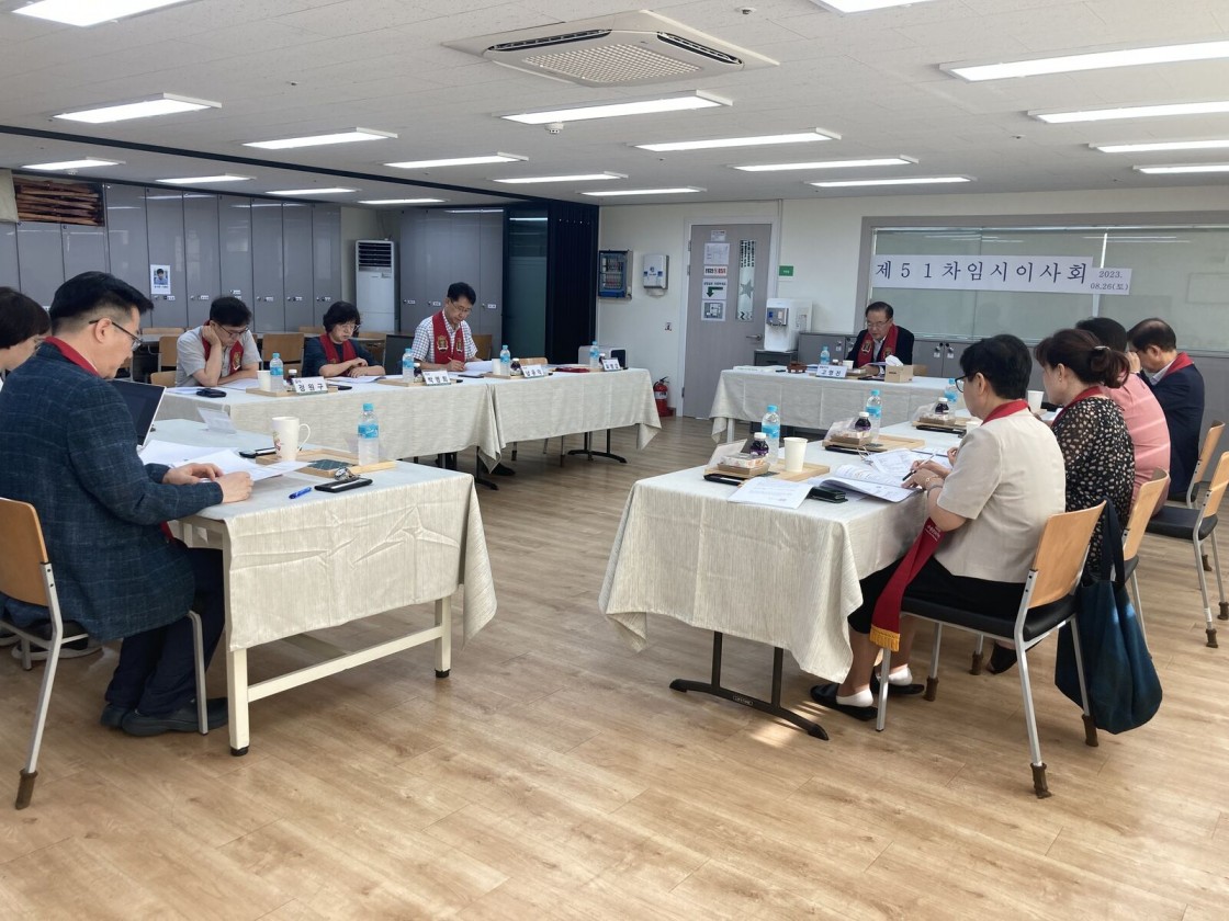 2023년 8월 26토요일에 제 51차 임시 이사회가 법인사무국에서 진행되었습니다.
