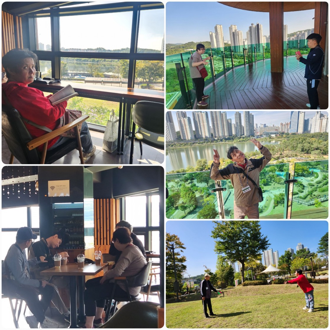 오후에는 프라이부르크전망대에 올라 광교호수공원의 전망을 바라보며 기분전환을 했습니다. 전망대 카페에서 차 한잔을 하며 이용인 간의 친밀감을 다지는 시간도 되었습니다.