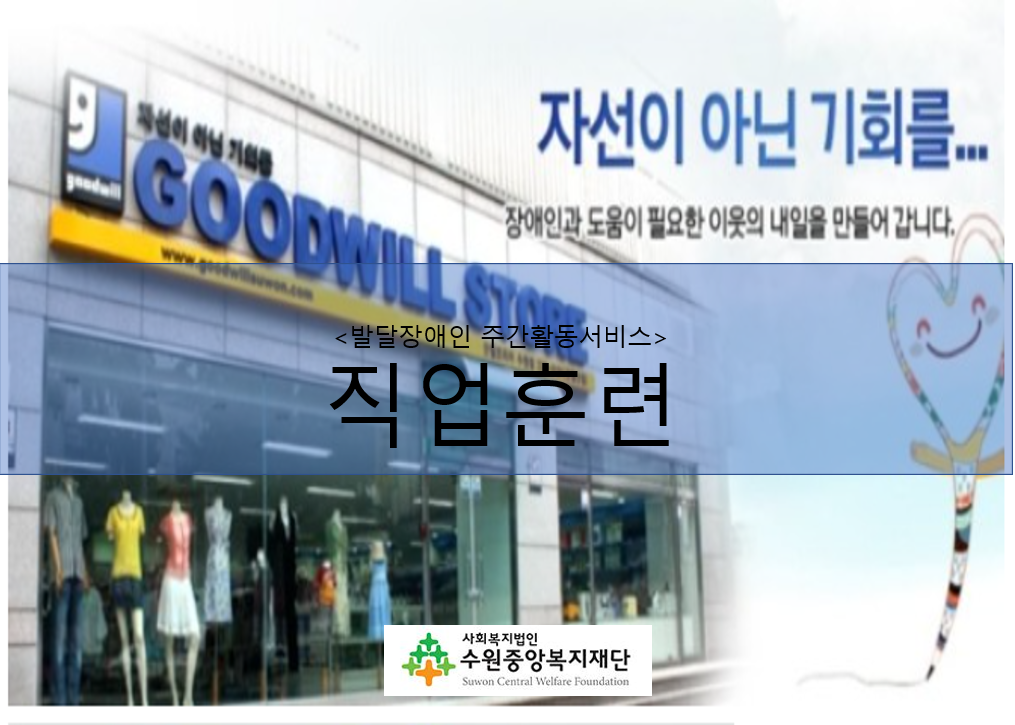 2023년도부터 매주 목요일 오후 시간에 수원굿윌스토어을 방문하여 직업훈련을 진행하고 있습니다.
