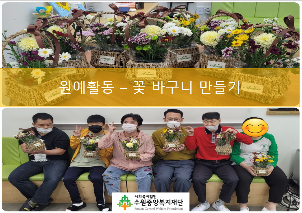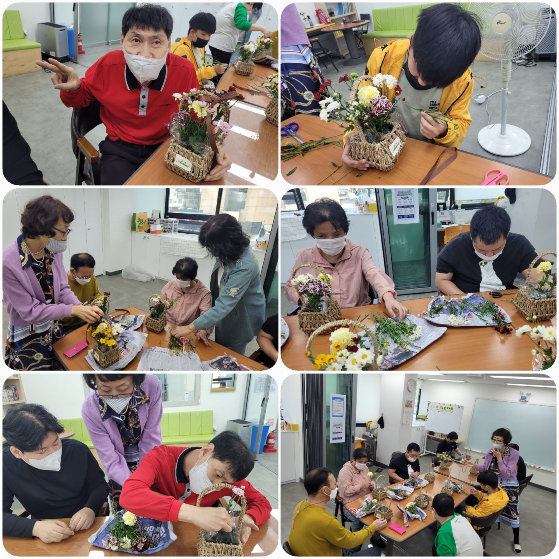 소중한 사람에게 꽃 선물을 할 생각에 더욱 정성스럽게 활동에 참여하는 이용인들이였습니다.