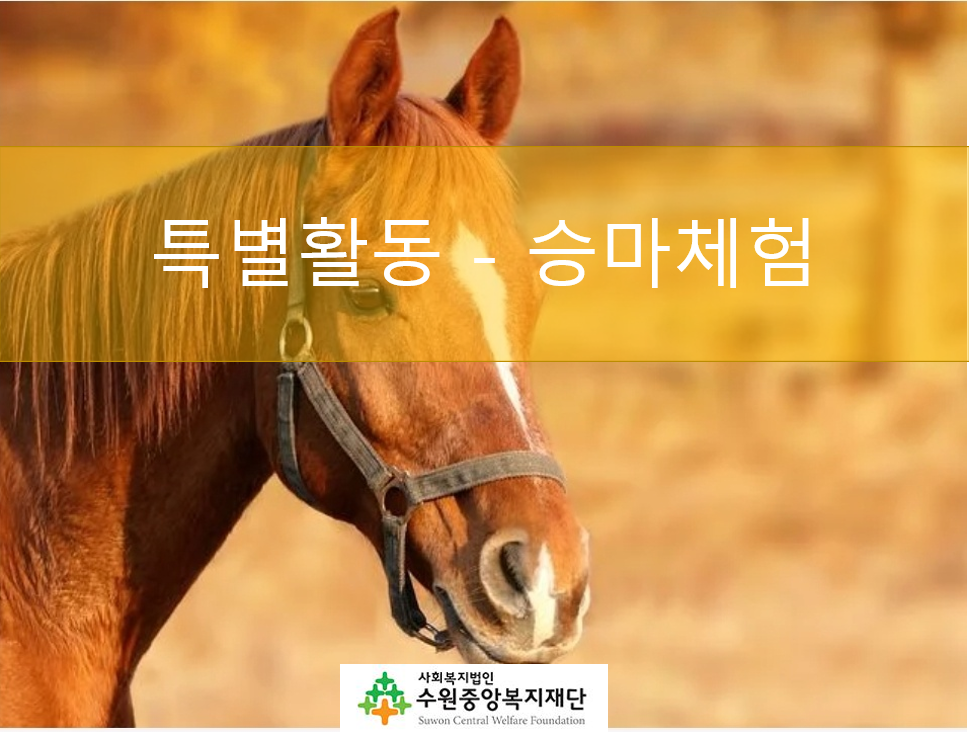 ‘사회공익 승마사업’ 은 경기도에서 진행되는 사업으로 말을 매개로 한 승마체험을 통해 심리정 안정감과 스트레스를 해소할 수 있는 사업으로 3년 동안 신청하여 참여하고 있습니다.