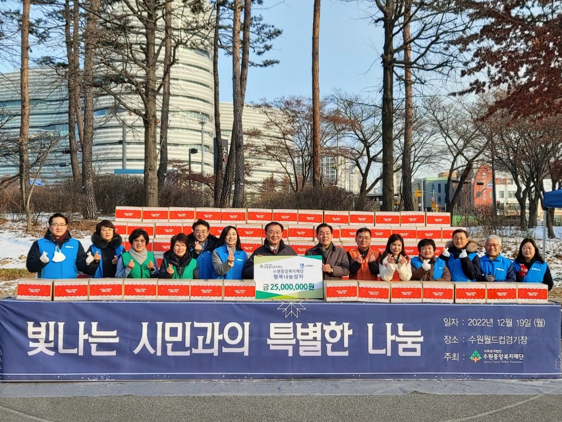 사회복지법인 수원중앙복지재단(대표이사 고명진)은 12월 19일(월) ‘수원시 취약계층가정지원 행복나눔상자 전달식’을 진행했다
