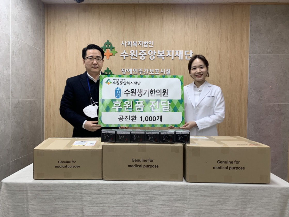 후원물품을 전달해주신 수원생기한의원 김민정 원장님께 감사드립니다.