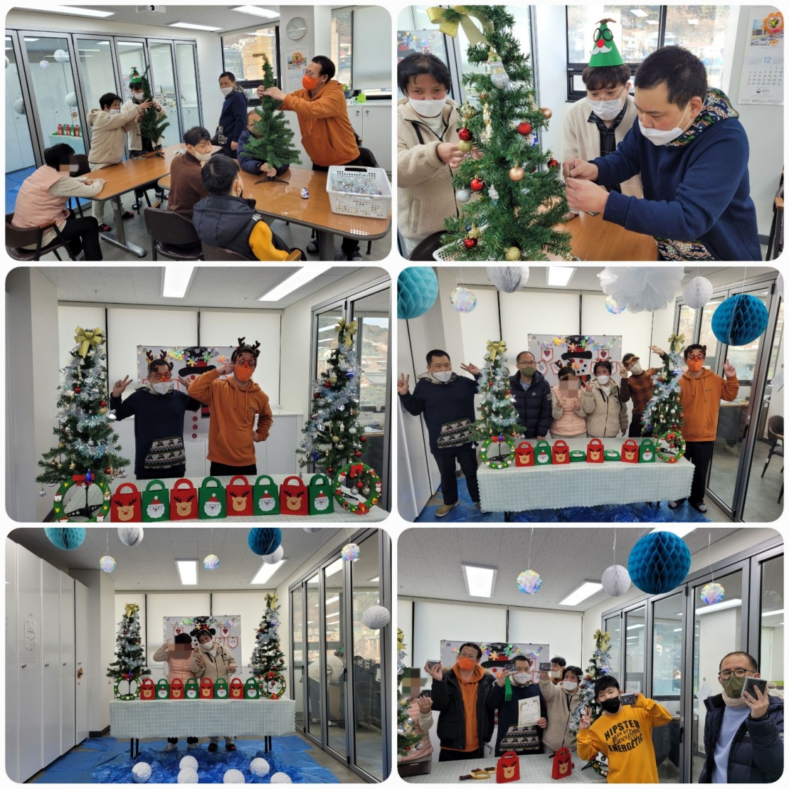 오전 활동으로 캐럴을 들으며 크리스마스 트리를 만들어 포토존을 완성하고 사진 촬영을 하였습니다.