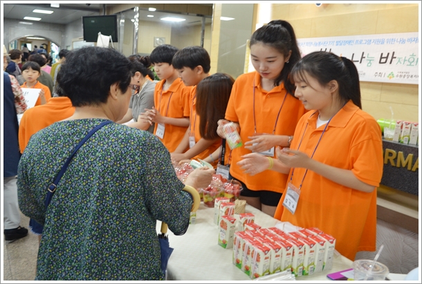 나눔활동으로는 먹거리판매(떡,김밥,과일컵), 음료판매(커피,레몬에이드,아이스티), 물품판매(화장품,옷,기타잡화)를 진행하였습니다.