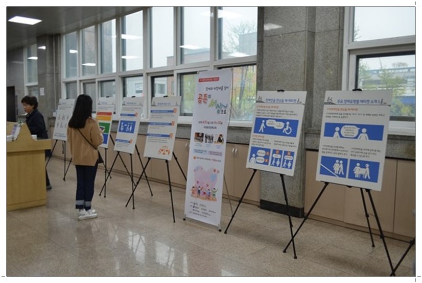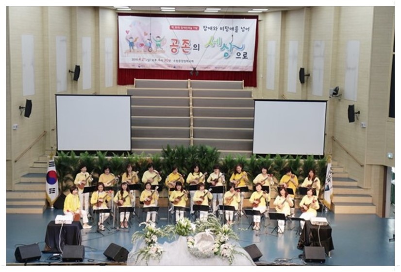 오전 930분부터 오후 230분까지는 지역주민을 대상으로 장애인식개선 홍보물 전시와 장애체험이 진행하였고 오후 430분부터 6시까지는 모범 장애인, 장애인 가족상 시상과 우쿨렐레, 뮤지컬 갈라쇼, 샌드아트 등의 공연이 진행되었습니다.
