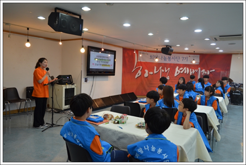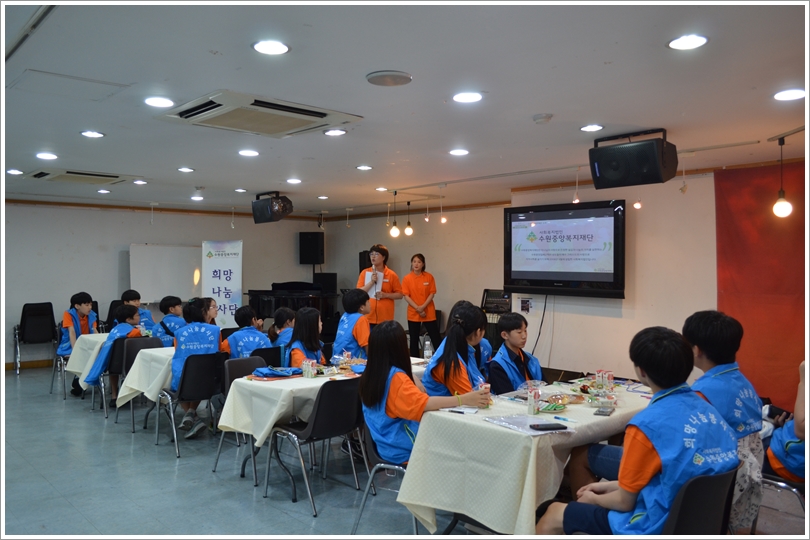 수원중앙복지재단에서는 2019.7.6(토)  중앙교회 전시실에서 희망나눔봉사단 7기 1회기 활동으로 오리엔테이션 및 나눔교육을 진행하였습니다.