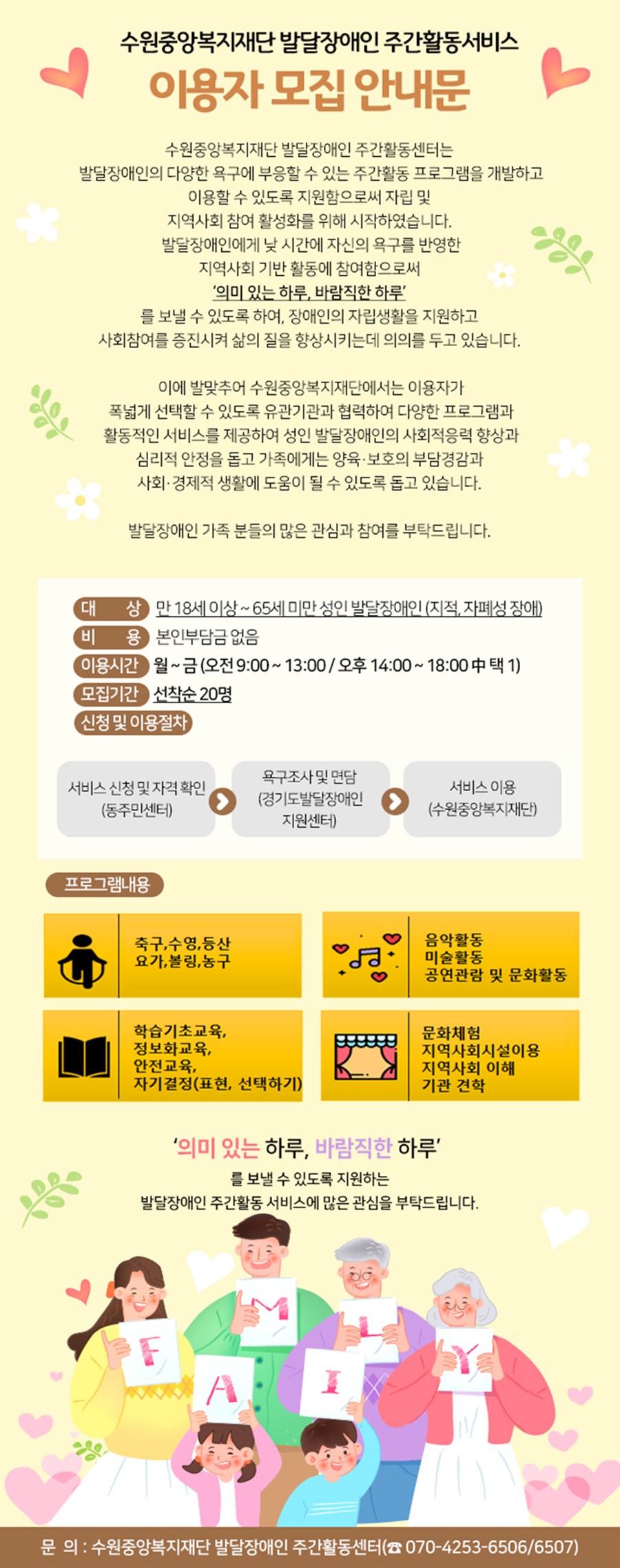수원중앙복지재단 발달장애인 주간활동서비스 이용자 모집 안내
