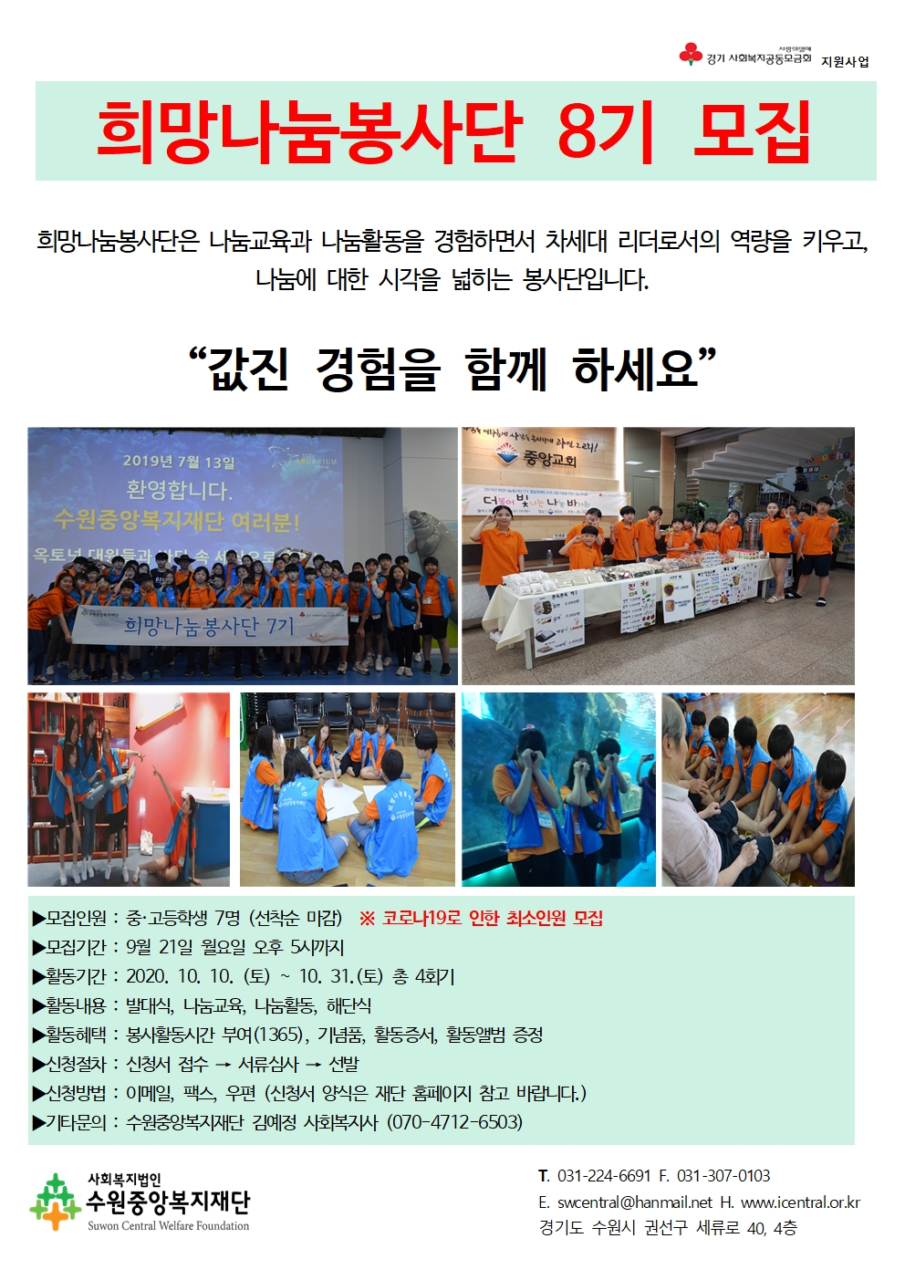 수원중앙복지재단 희망나눔봉사단 8기 모집 많은 관심과 참여 부탁드립니다.