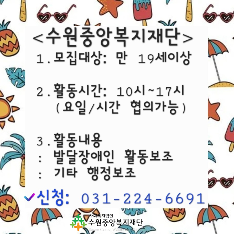 < 수원중앙복지재단 발달장애인 주간활동서비스 자원봉사자 모집 >